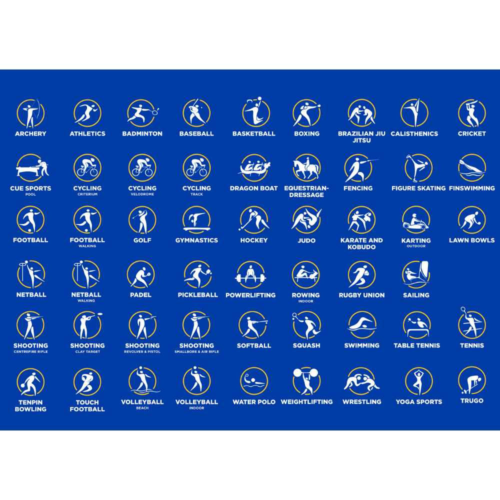To include your sport logo on the right hand chest, choose your sport from the dropdown below. A $5 personalisation fee will be added at checkout. See the image for available logos and placement.